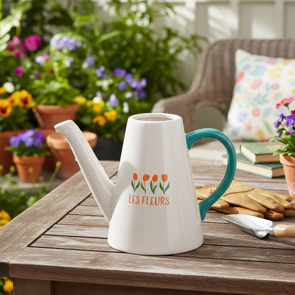 Les Fleurs Ceramic Watering Can And Flower Vase