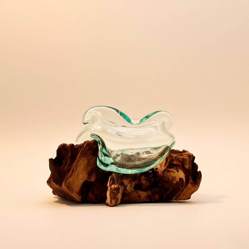Each bowl is handmade, with the glass being melted and hand blown to be an exact fit to sit on top of the gamal wood base. These scandi decor bowls are great piece of contemporary home decor and make brilliant house warming gifts.