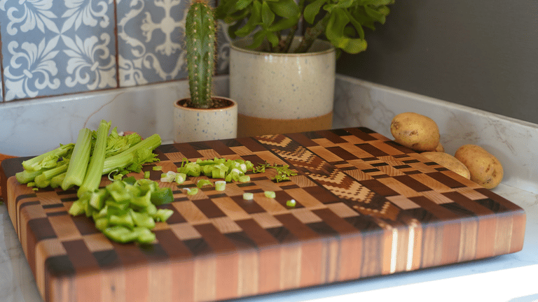 END-GRAIN refers to the direction of the wood grain – this is very important when making a chopping board or butcher’s block. End-grain has many benefits over face-grain: it’s better for your knives, longer-lasting, is self-healing, antibacterial, and looks incredible!