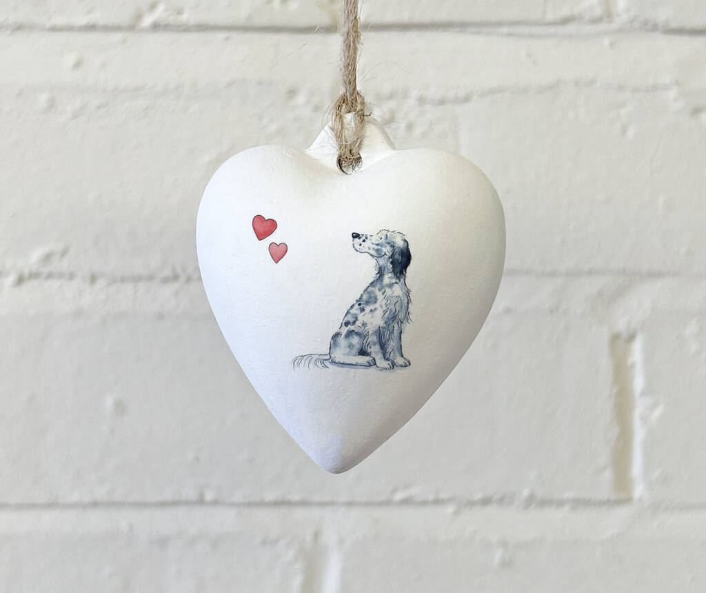 English Setter Ceramic Heart Bauble