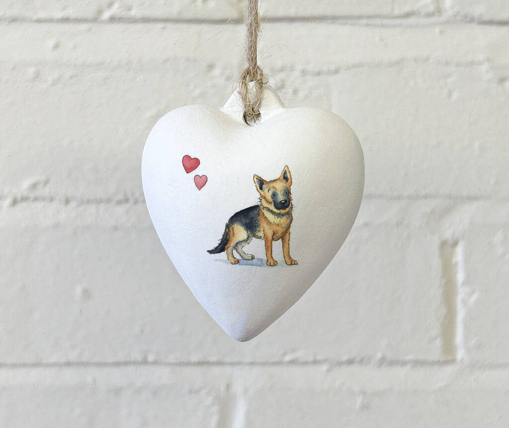 German Shepherd Ceramic Heart Bauble