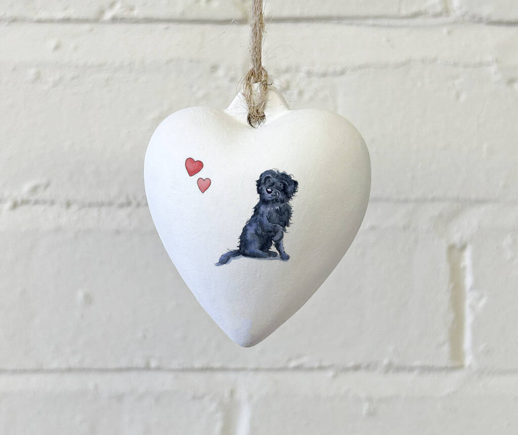 Labradoodle Black Ceramic Heart Bauble