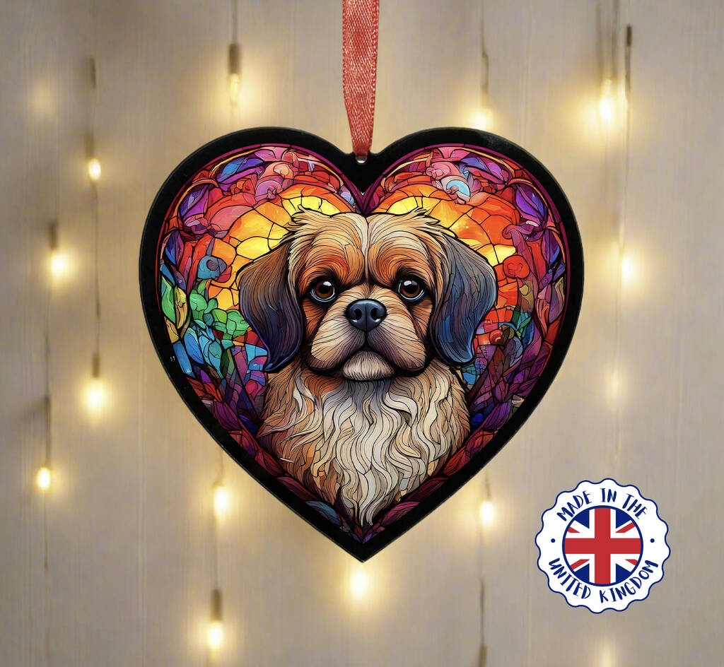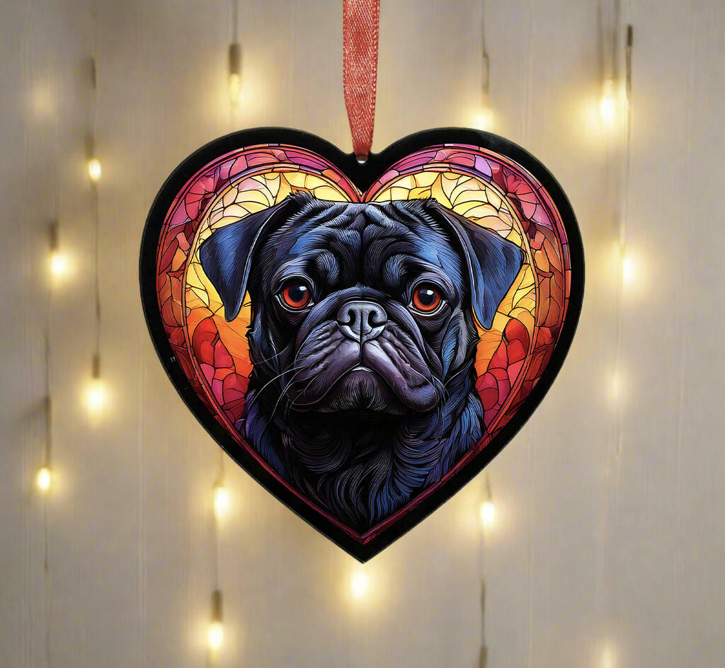 Pug Stained Glass Effect Heart Suncatcher