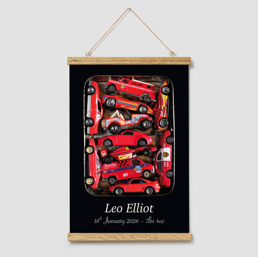 Personalised Red Toy Cars Childhood Wall Art Print