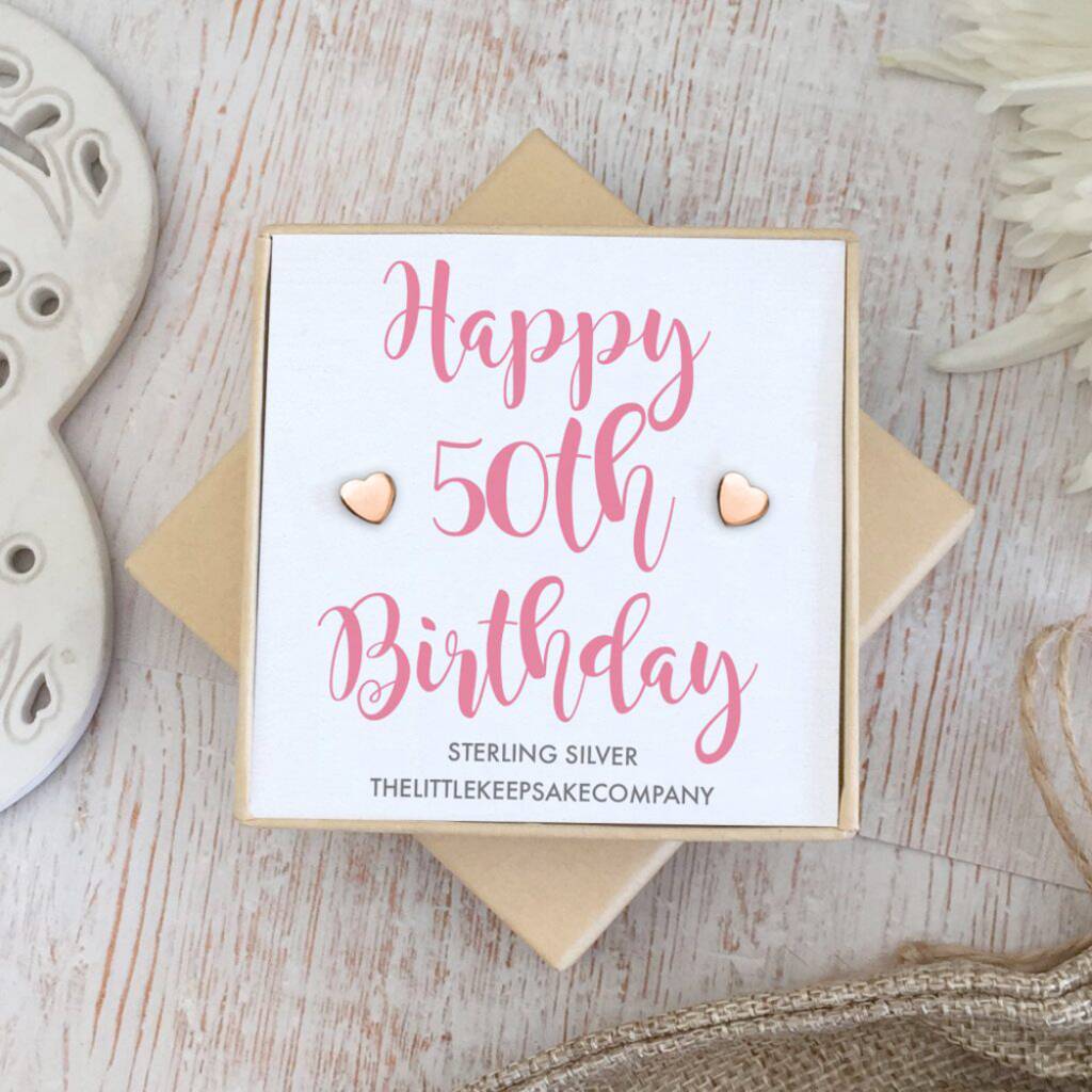 Happy 50th Birthday Rose Gold Earrings