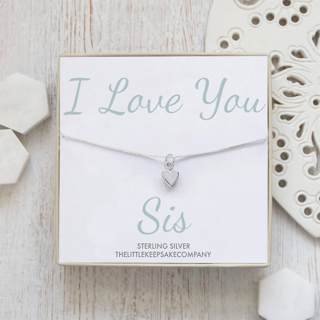 You will always have her back and she’ll have yours… even though she still ‘borrows’ from your wardrobe without asking! Our sweet sterling silver heart necklace will let her know loud and clear; I Love You Sis.