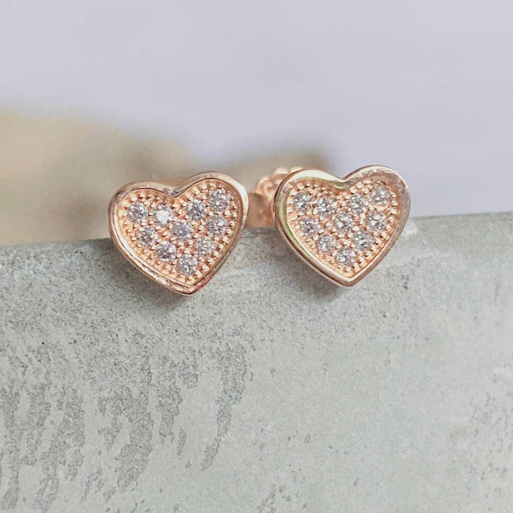 Rose Gold Cz Heart Earrings, Happy Valentines