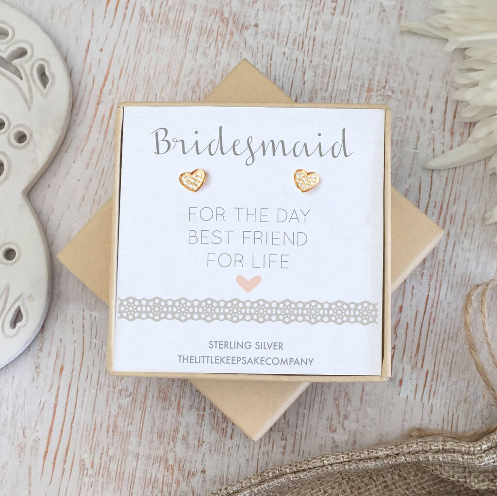 Rose Gold Cz Heart Wedding Earrings – Bridesmaid For The Day