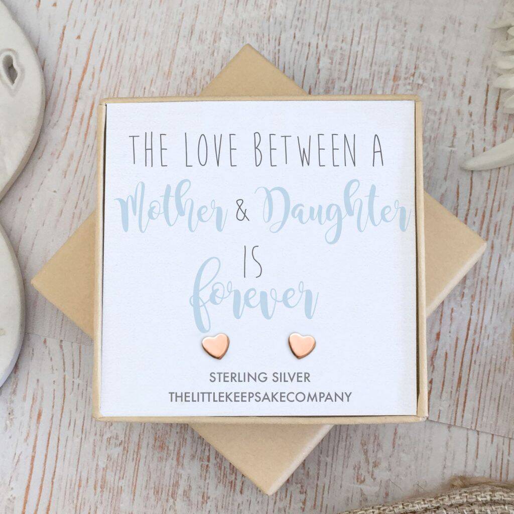 You’ll be there for each other no matter what and share a love that means you are always by her side in a heart beat. These sweet rose gold heart studs are a special way to let her know how much you care with a message straight from the heart; The Love Between A Mother & Daughter Is Forever.