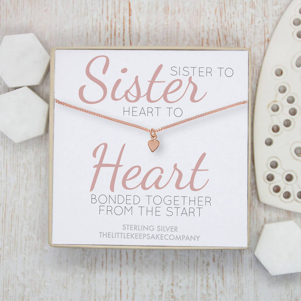 Rose Gold Heart Necklace, Sister To Sister