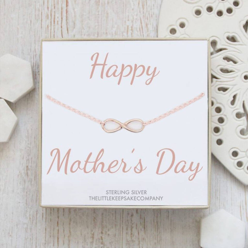 You’ll be there for each other no matter what and share a love that means you are always by her side in a heart beat. This beautiful rose gold infinity necklace is a special way to let her know how much you care with the message; Happy Mother’s Day.