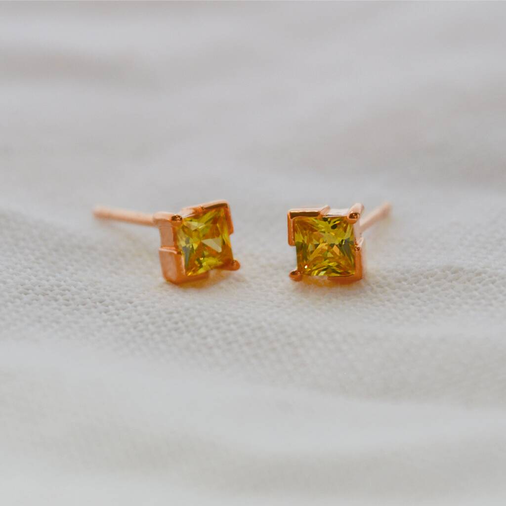 A set princess cut stone with small ball detail in the style of November's birthstone, Topaz.