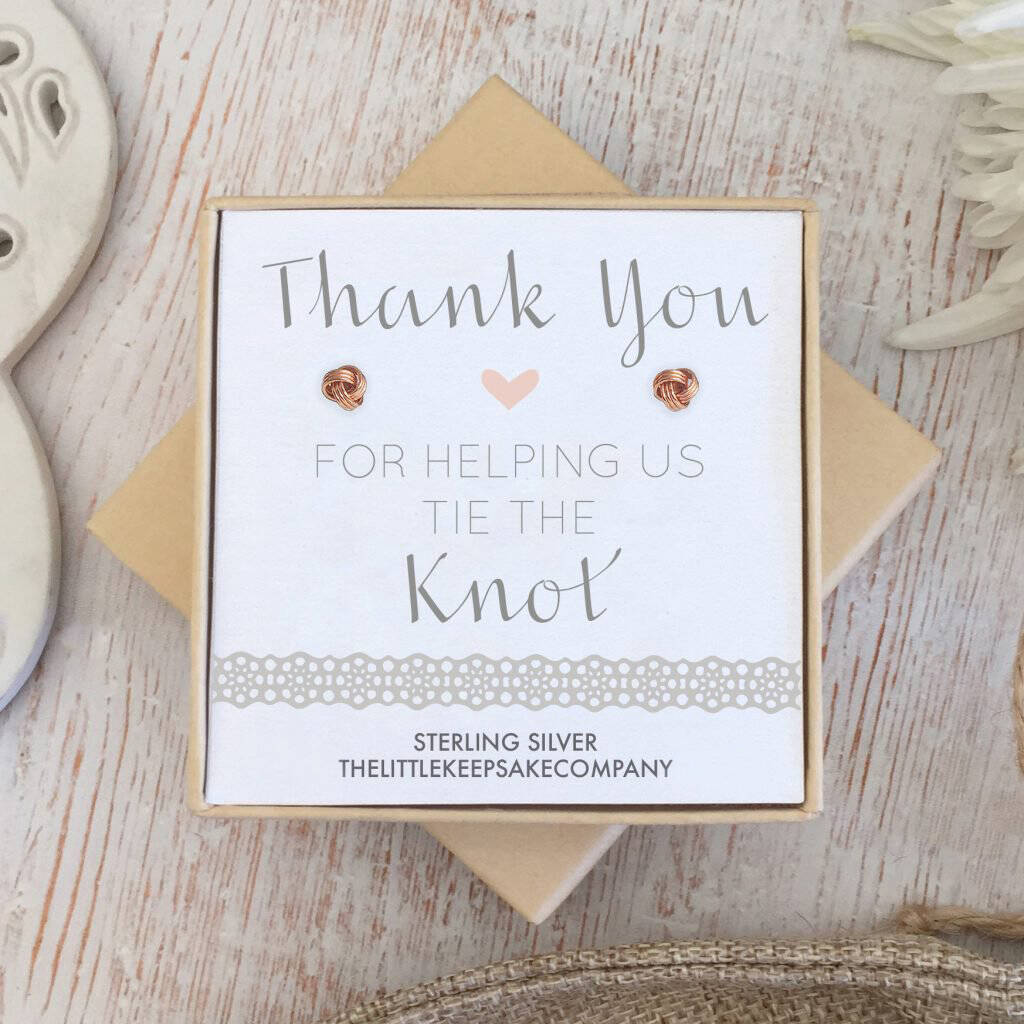 Rose Gold Wedding Earrings, Thank You Tie The Knot