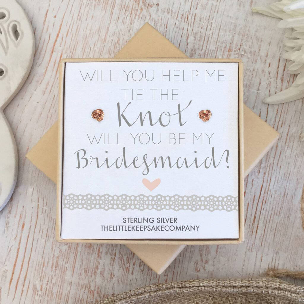 Rose Gold Wedding Earrings, Tie The Knot, Bridesmaid