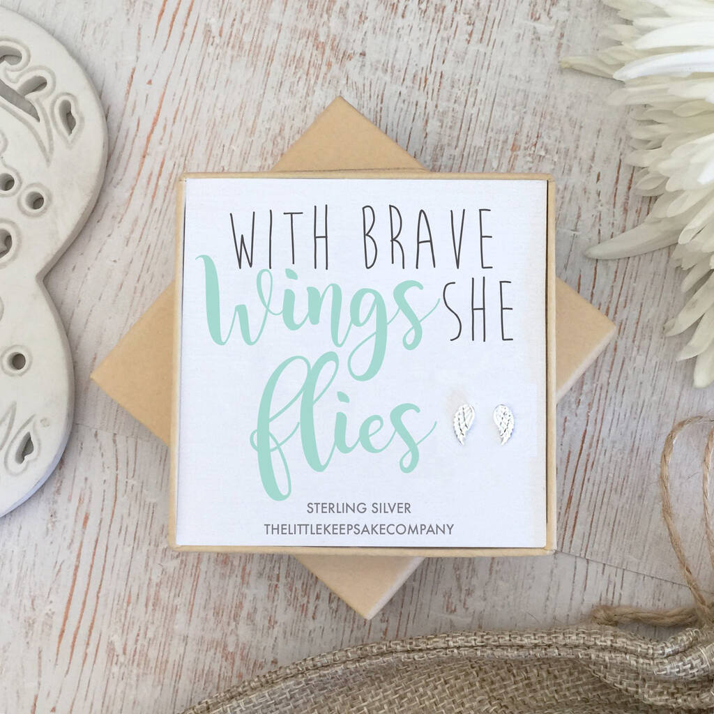Silver Angel Wing Earrings, Brave Wings She Flies