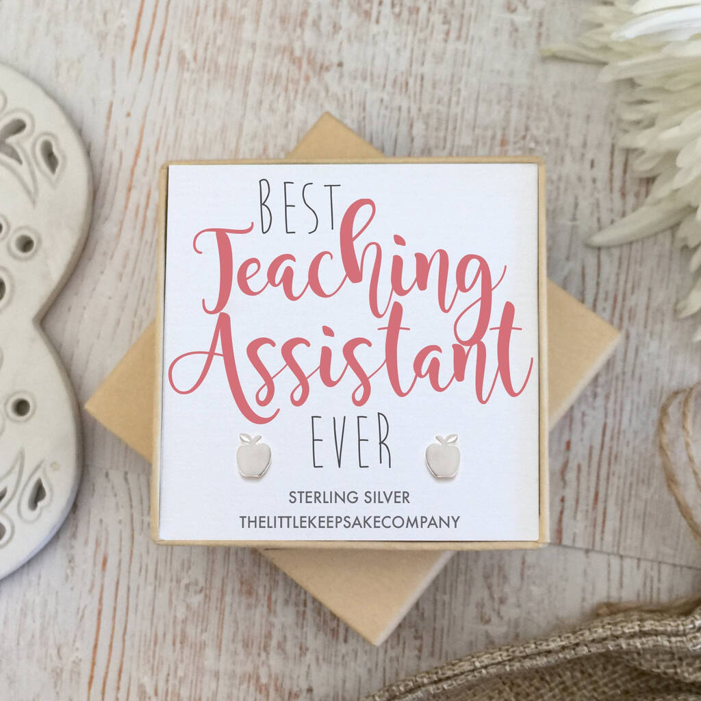 There is one TA that goes that extra mile, makes lessons a laugh and studying special – let them know how awesome they are with these deliciously sweet silver apple studs and the message; Best Teaching Assistant Ever.