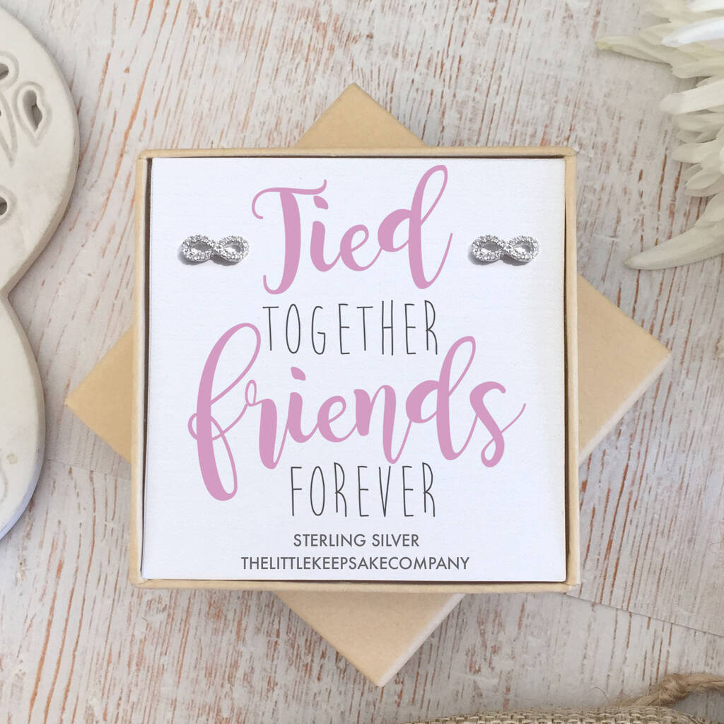 Silver Cz Infinity Earrings, Tied Together Friends Forever