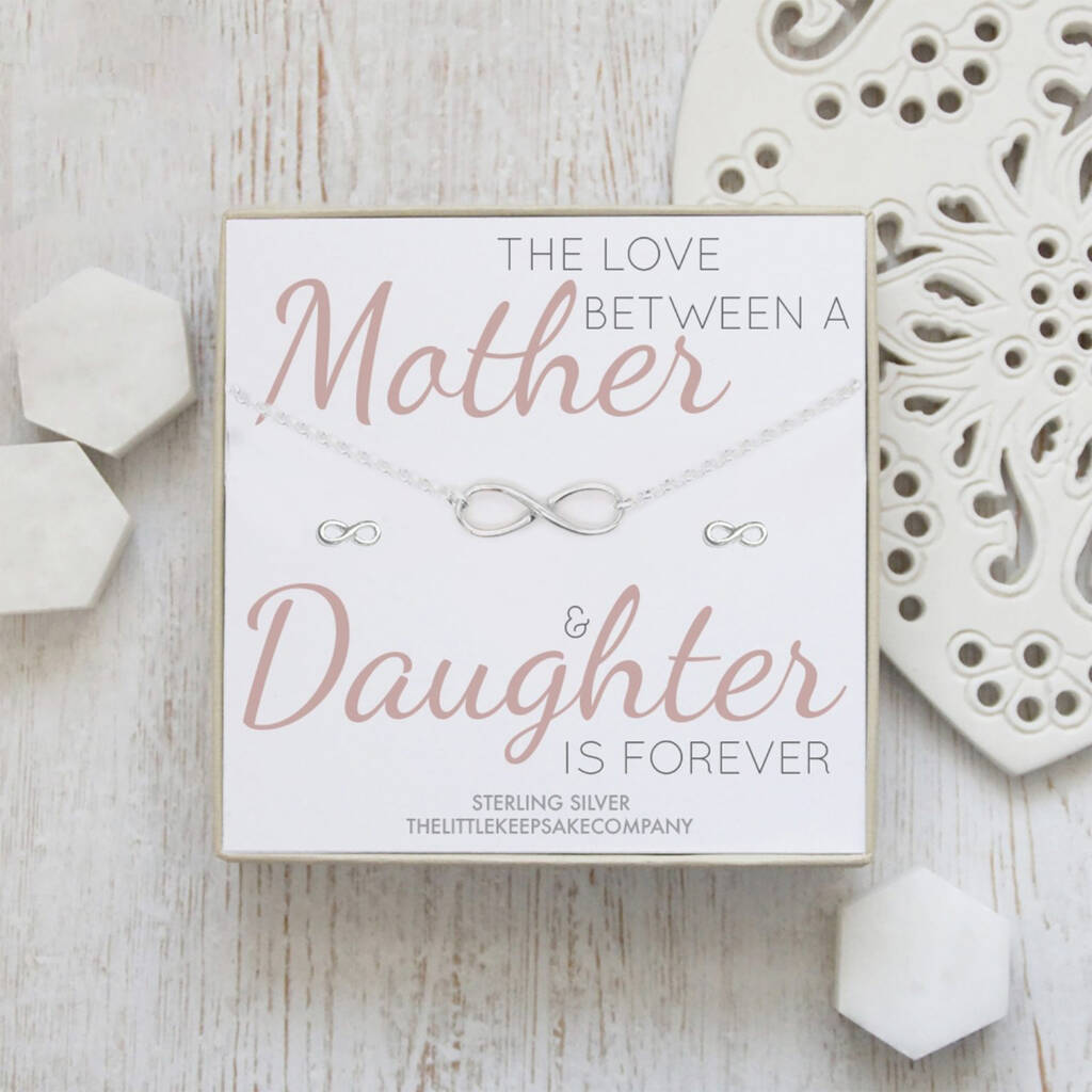 You’ll be there for each other no matter what and share a love that means you are always by her side in a heart beat. This stunning silver infinity gift set is a special way to let her know how much you care with a message straight from the heart; The Love Between A Mother & Daughter Is Forever.