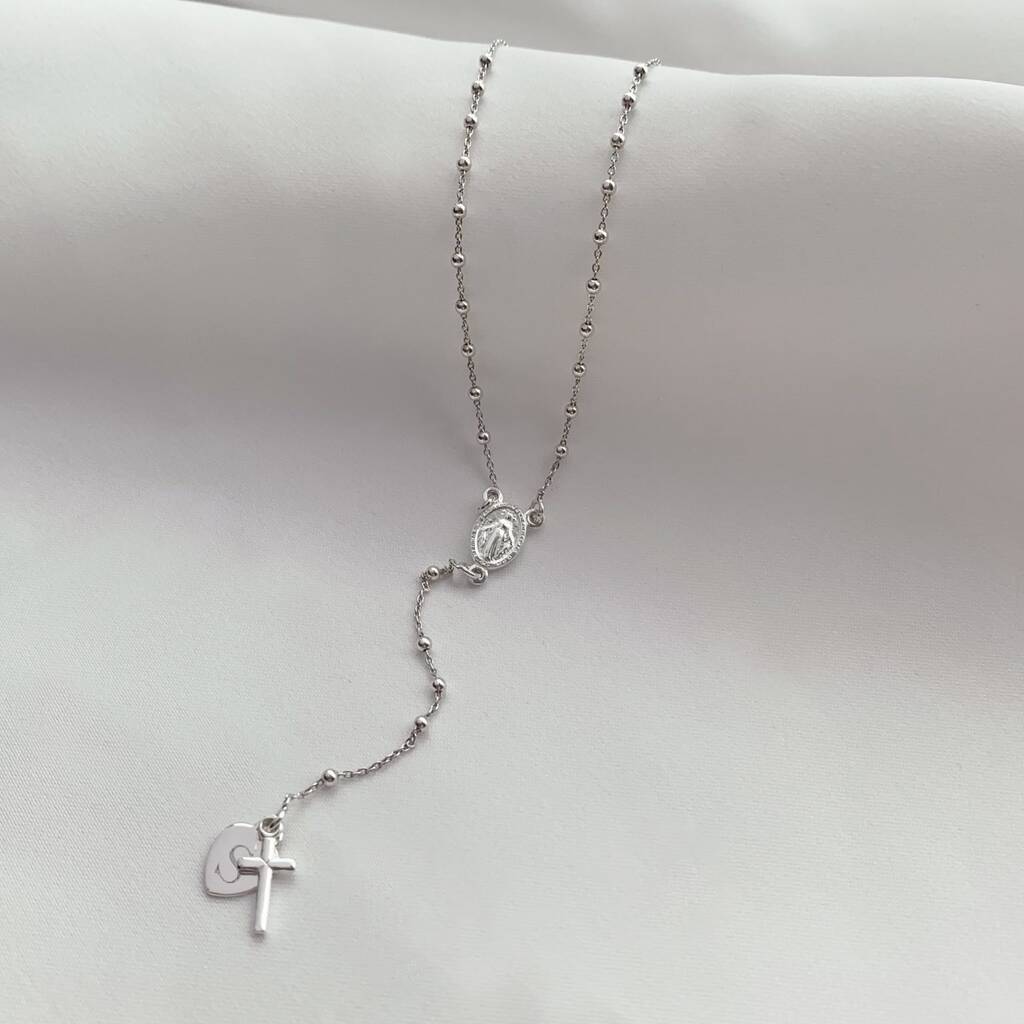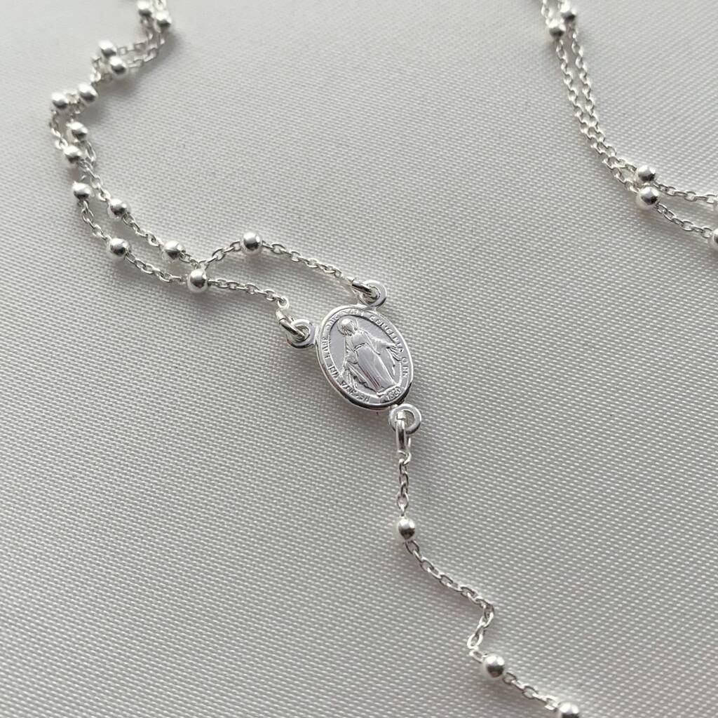 St Mary Rosary Necklace Silver Dinky Heart