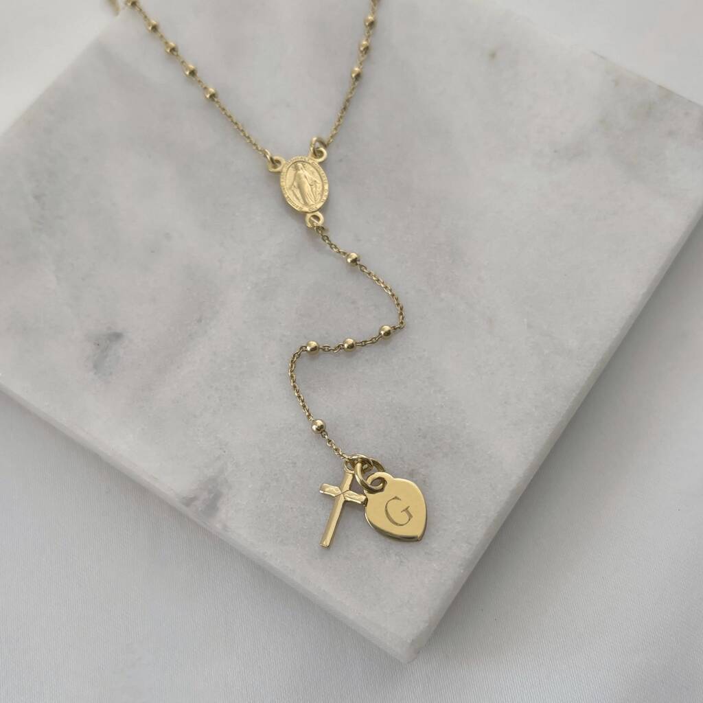St Mary Rosary Necklace Yellow Gold Dinky Heart