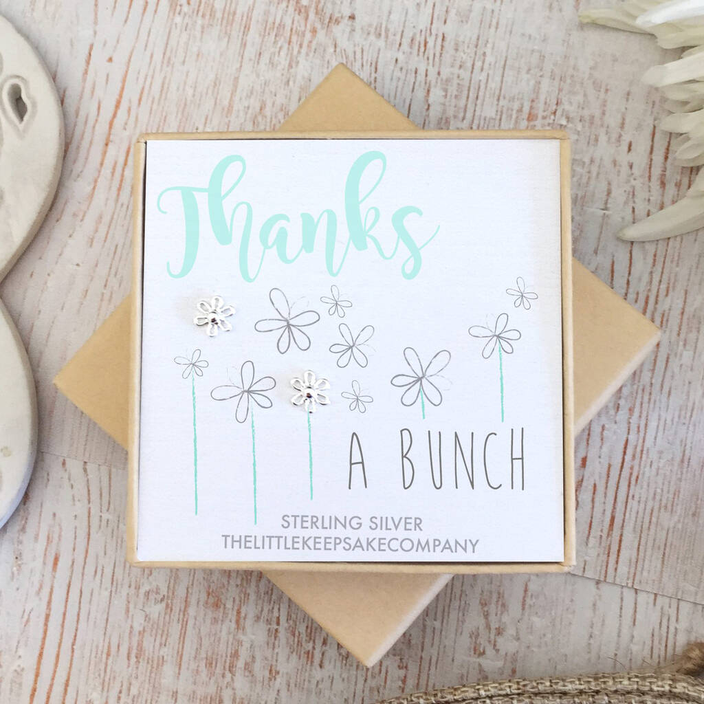 These pretty sterling silver flower earrings are a thoughtful way to show your appreciation with the message; Thanks A Bunch.
