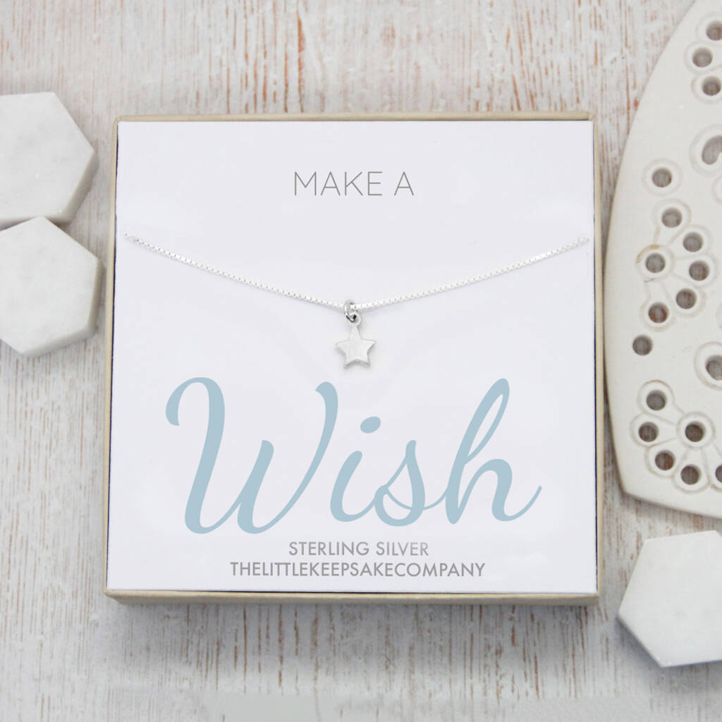 It’s your lucky day! Our sterling silver star pendant grants the wearer love and magic, the perfect gift for friends and family alike. This pretty star necklace makes an ideal birthday gift or simply to let someone know you love them with the message; Make A Wish.