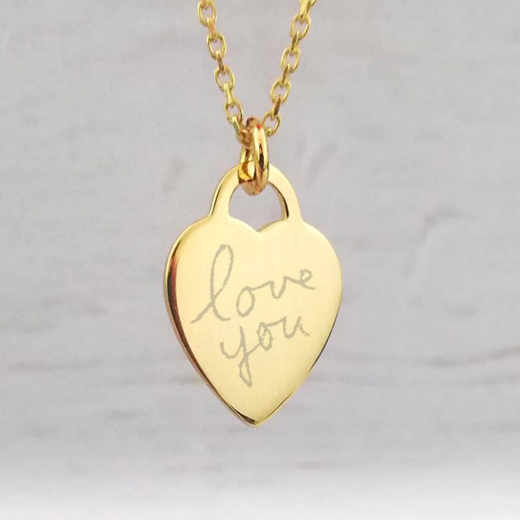 Yellow Gold Handwriting Mini Heart Necklace