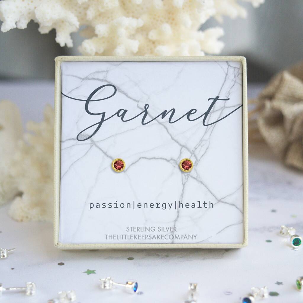Yellow Gold Vermeil January Birthstone Earrings – Garnet