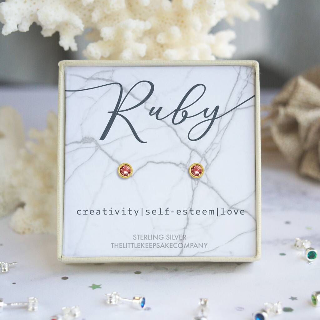 Yellow Gold Vermeil July Birthstone Earrings – Ruby