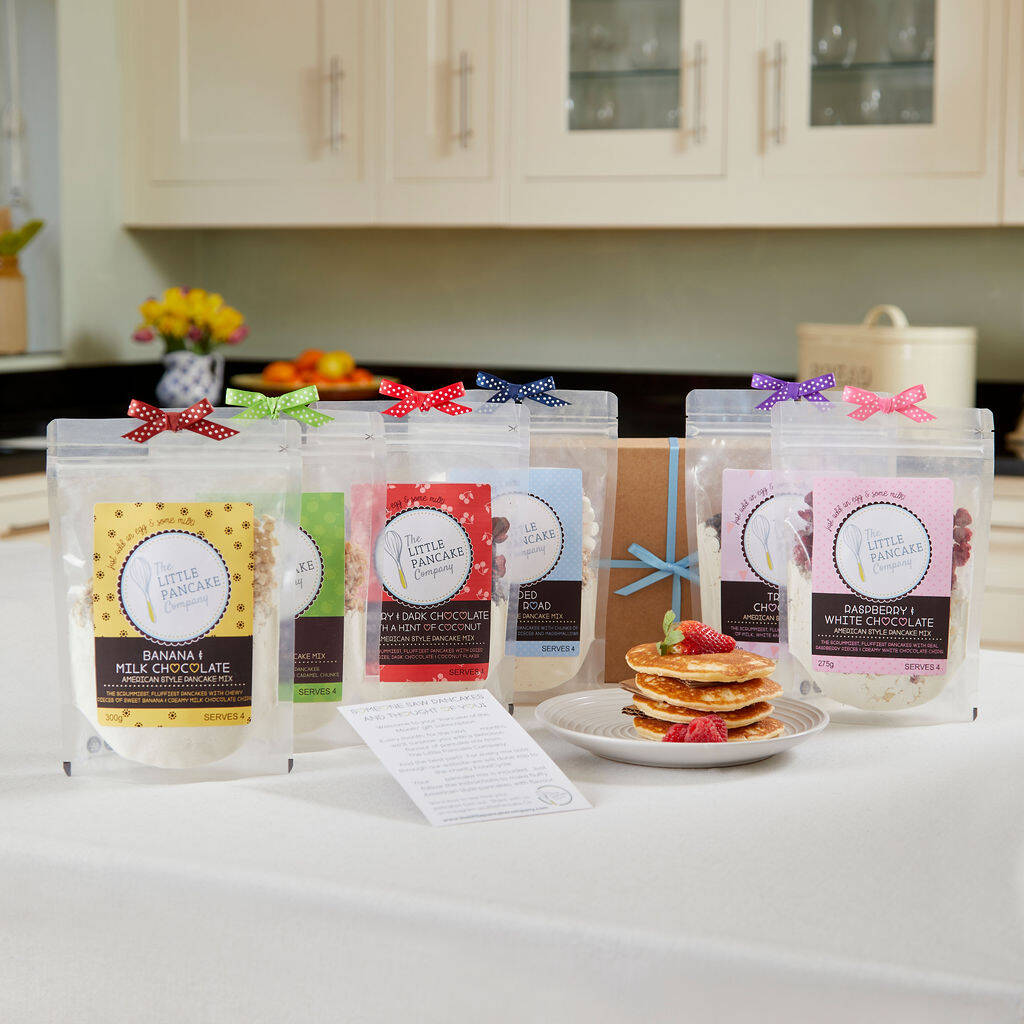 Flavours will be chosen by us here at Pancake HQ, but if you have any special requests, add these in the comments box when you check out and we will do our best to tailor your food gift where we can assuming the we have those mixes available at the time.