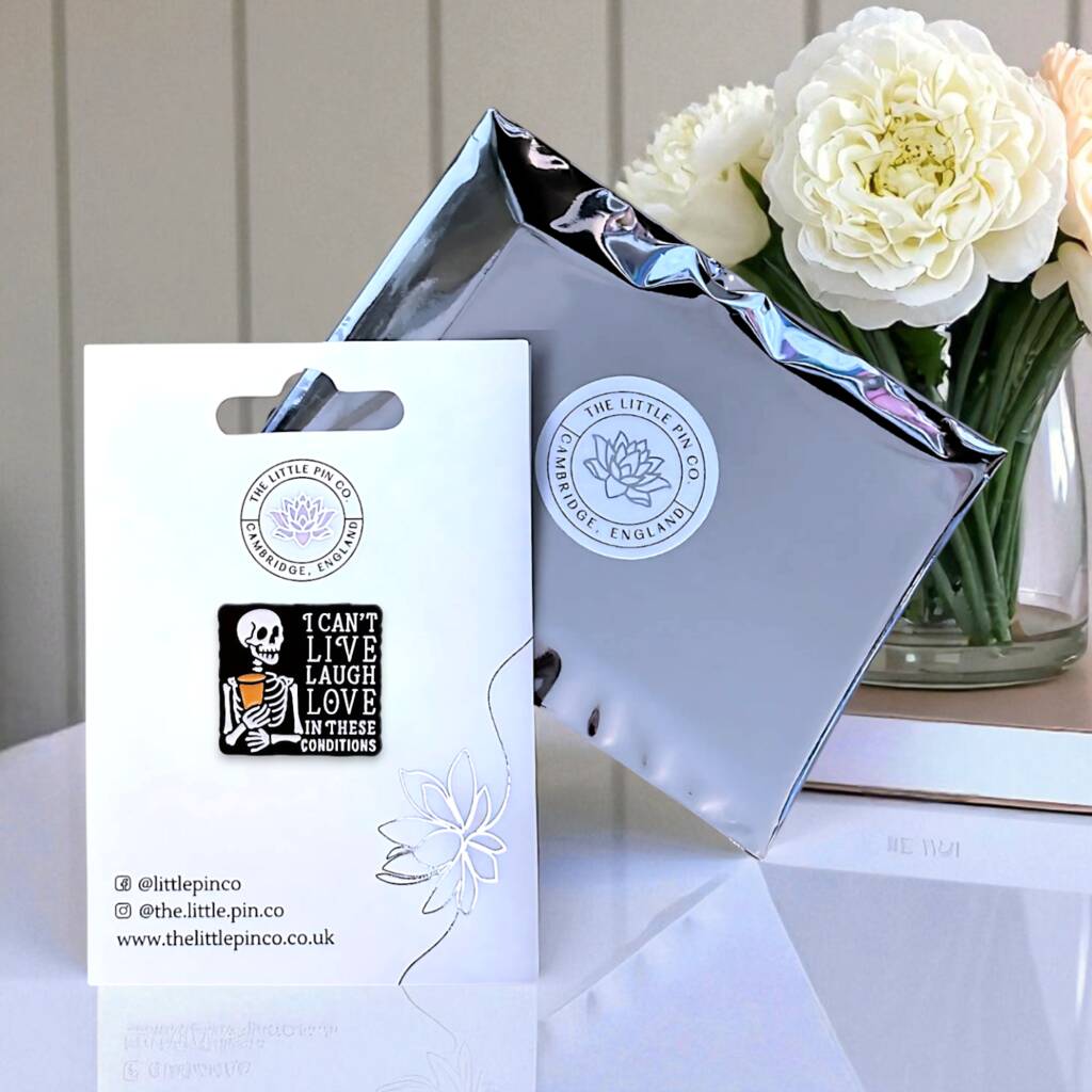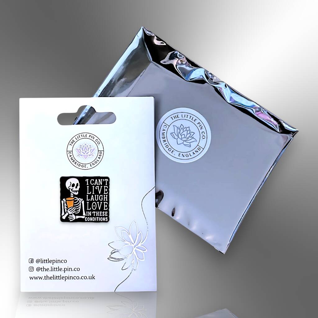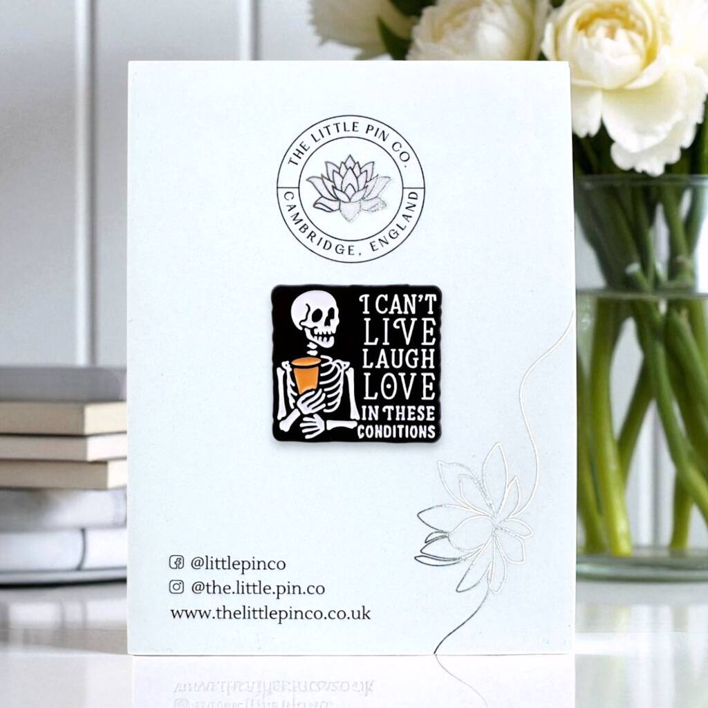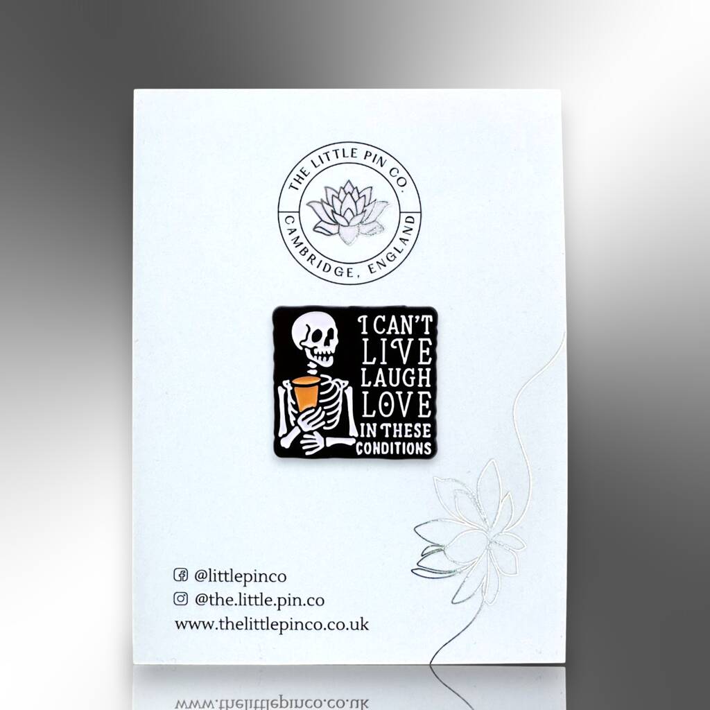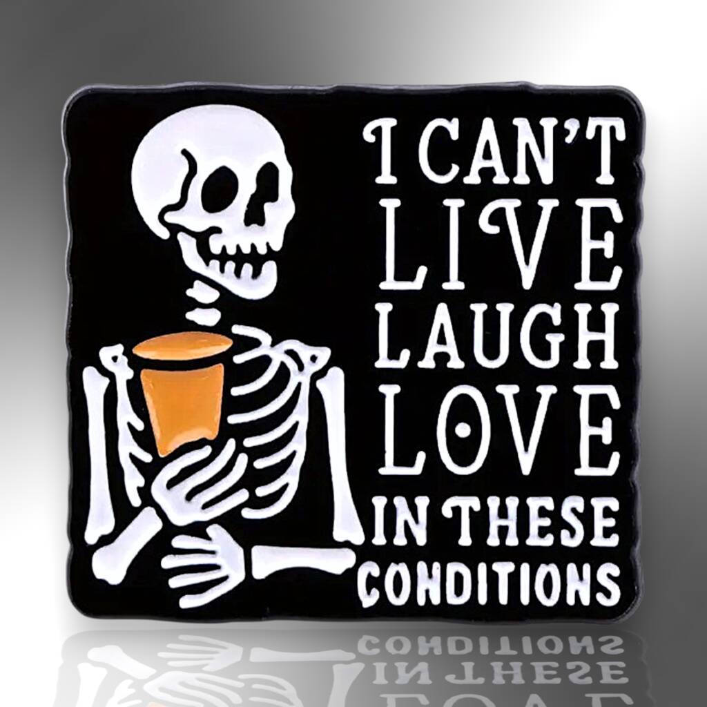 I Can't Live Laugh Love In These Conditions Skeleton Enamel Pin