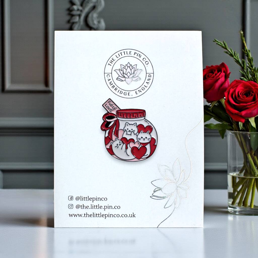 Mason Jar Of Cats And Hearts Valentine's Enamel Pin