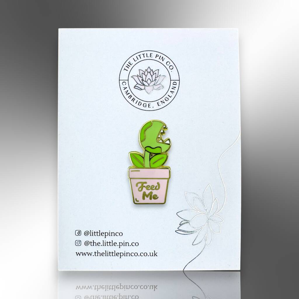 • Small Carnivorous Plant Feed Me Flowerpot Hard Enamel Pin Badge, thumbnail 8 of 8