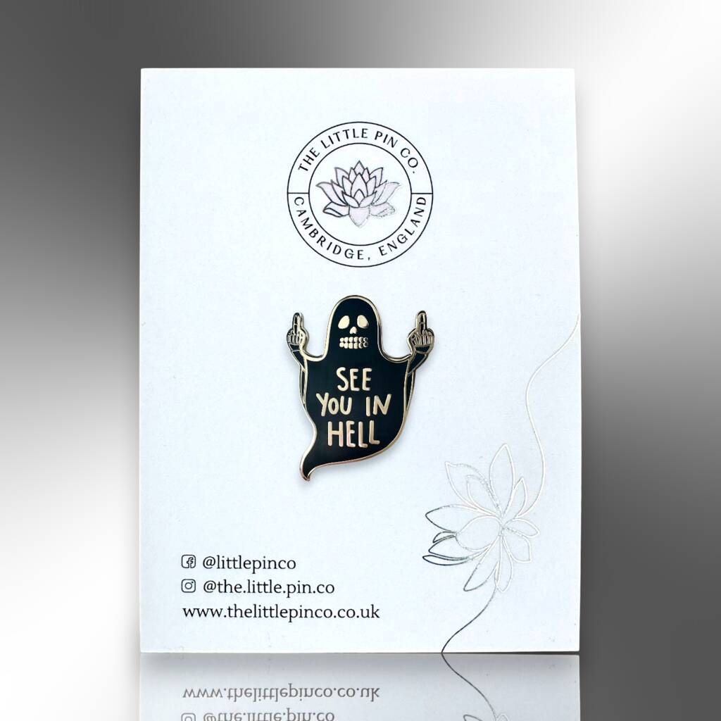 Sweary See You In Hell Black Ghost Halloween Hard Enamel Pin