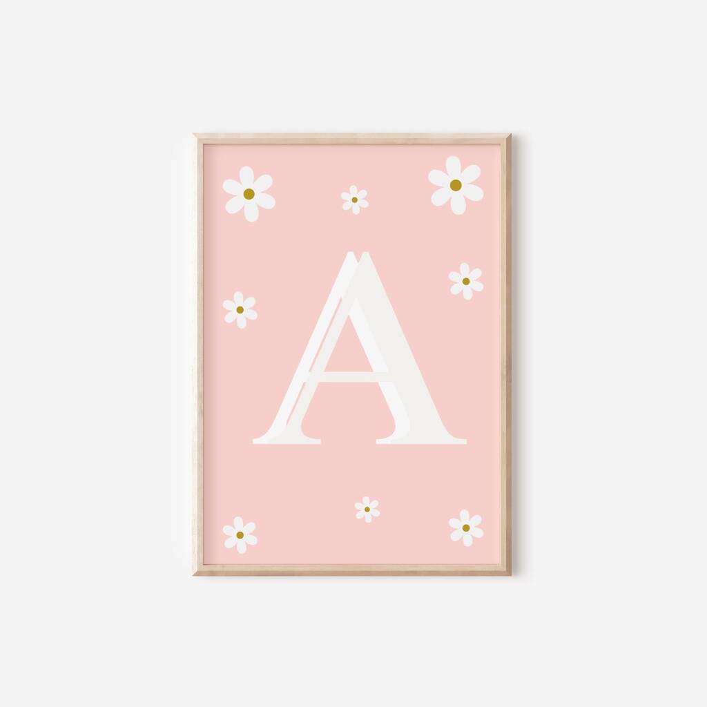 Girls Floral Initial Wall Print For Bedroom Or Nursery