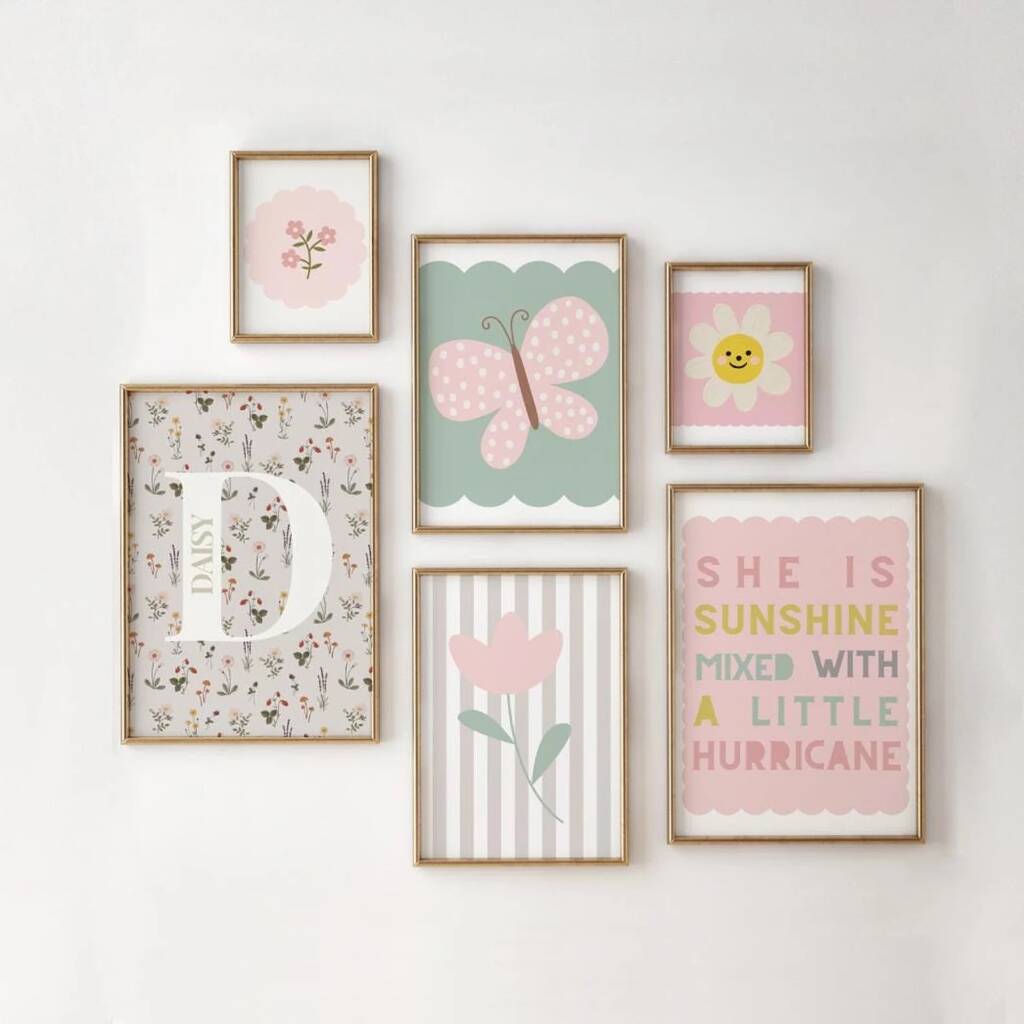 Girls Personalised Floral And Butterfly Wall Print Gallery Set