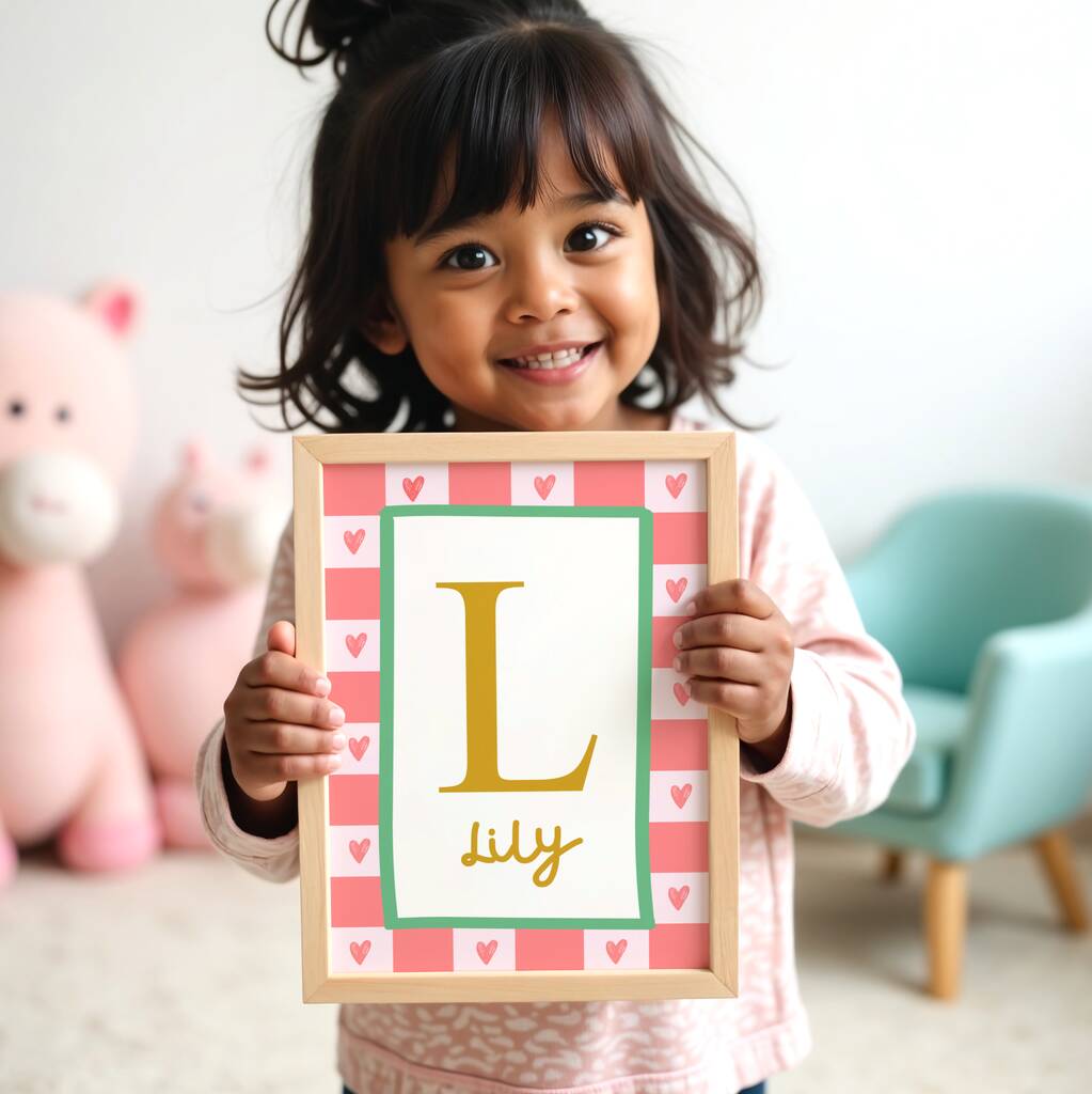 Girls Personalised Initial And Name Wall Print For Bedroom Or Nursery