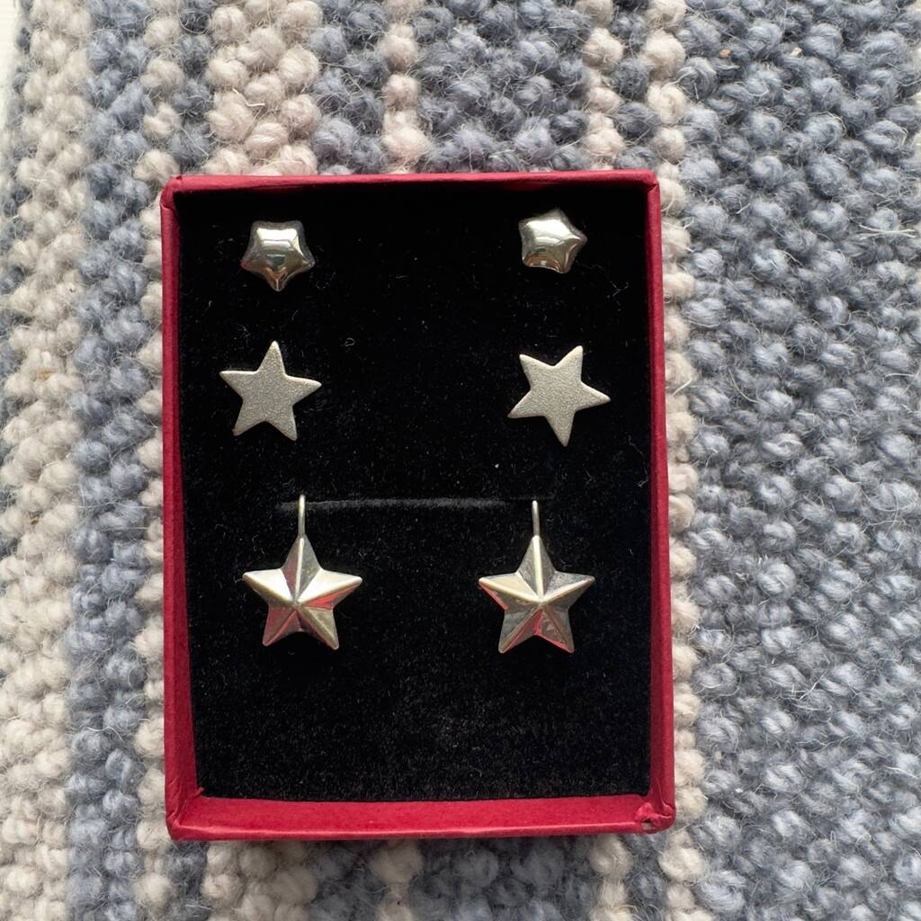 Christmas Star Sterling Silver Earrings Set Of Three
