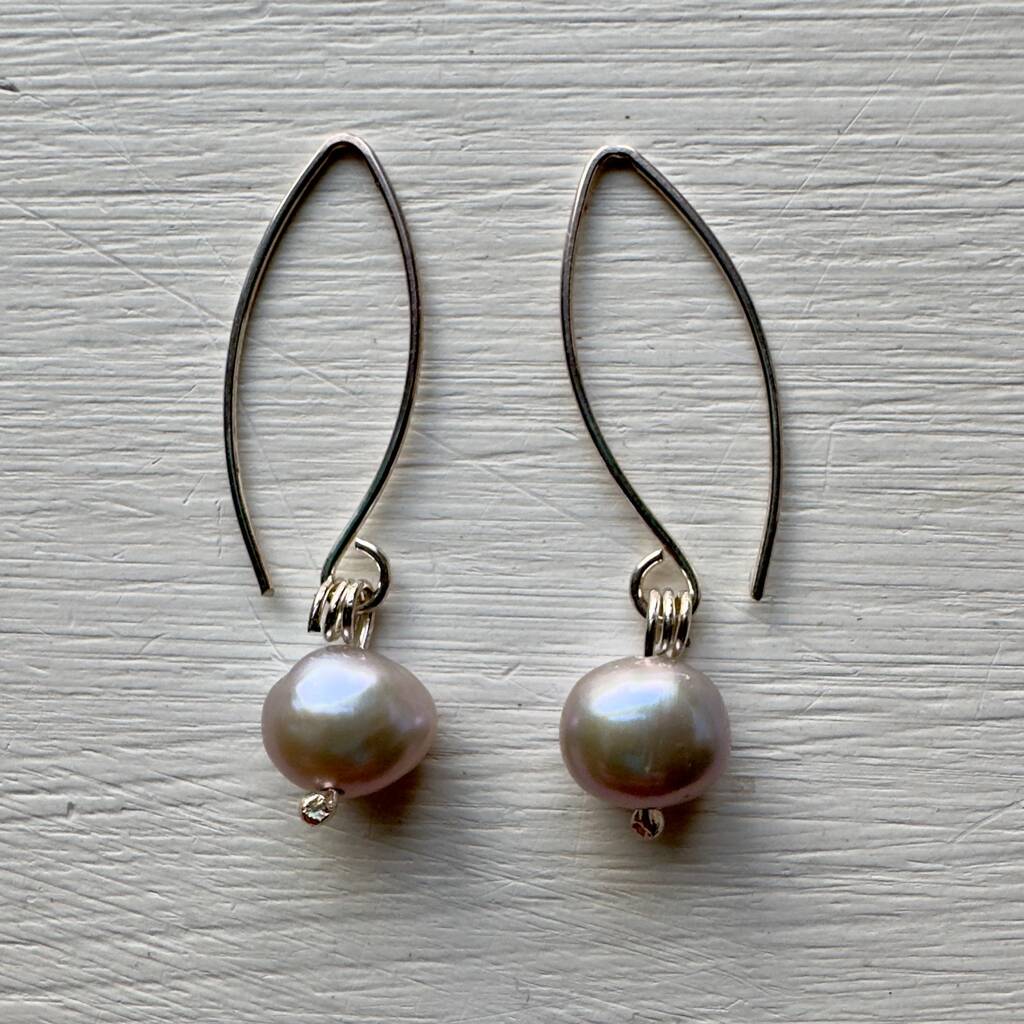 Grey Pearl Earrings On Long Sterling Silver Hooks