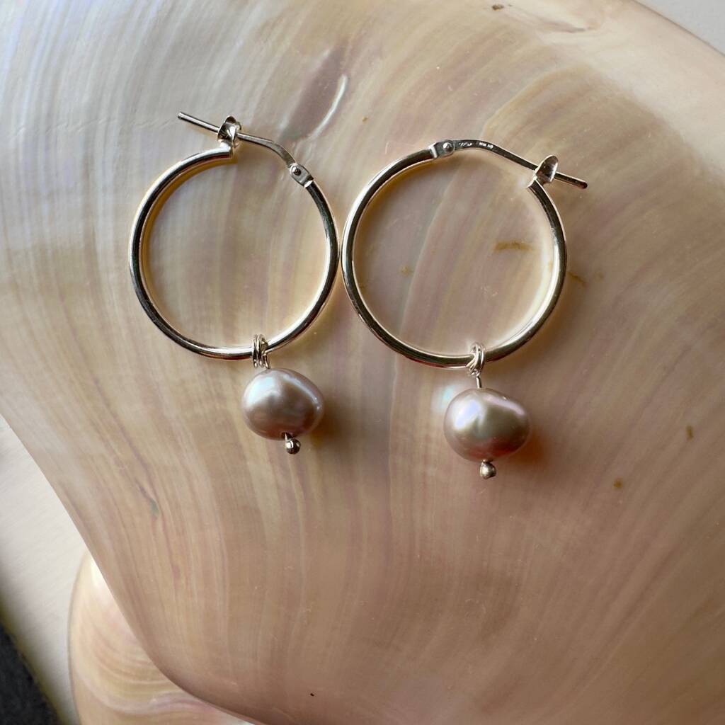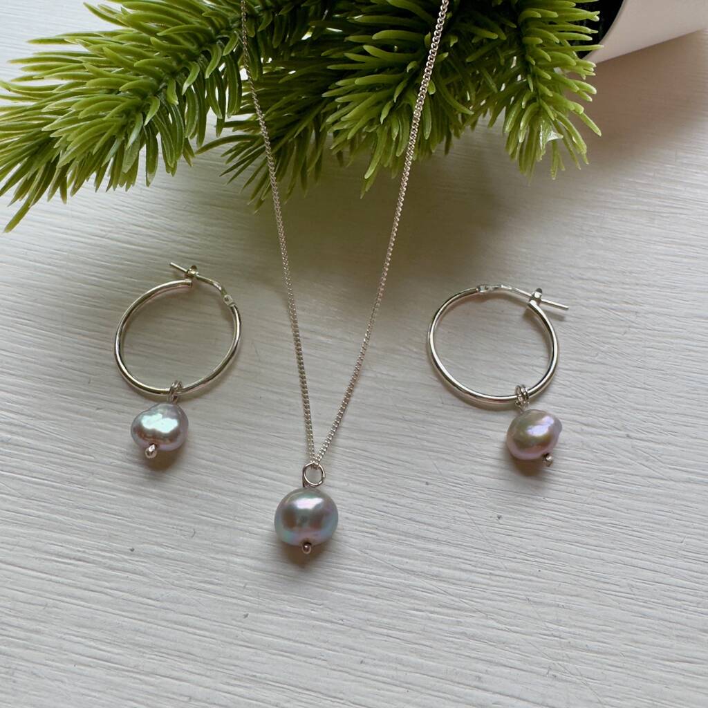 Grey Pearl Earrings Sterling Silver Hoops With Pearls