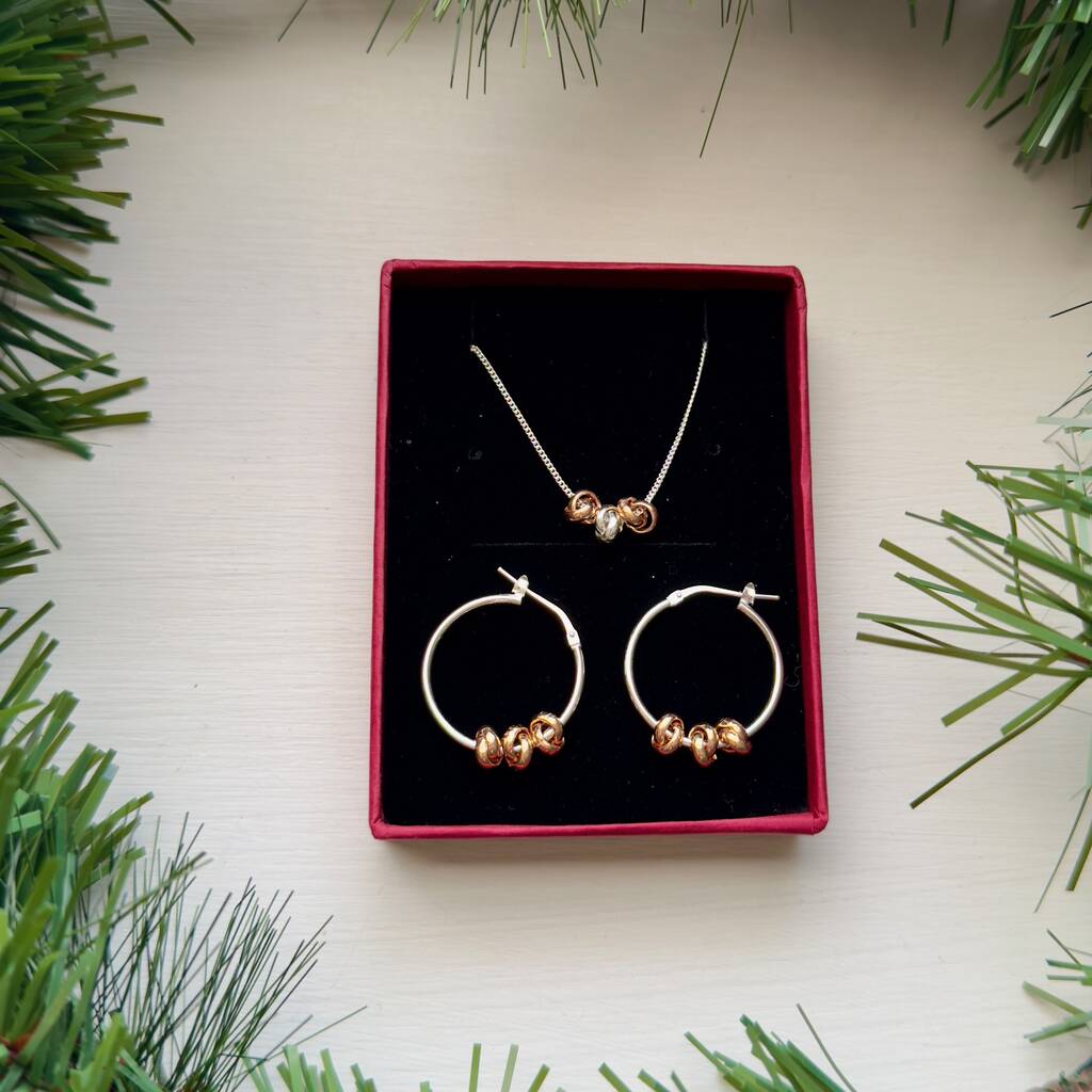 Knot Necklace And Hoop Earrings In Silver And Rose Gold