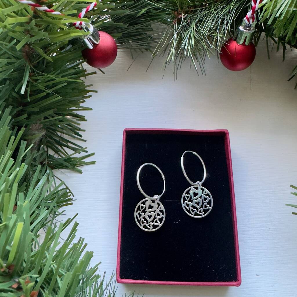 Sterling Silver Hoop Earrings With Detachable Hearts And Flowers Charm Pendant