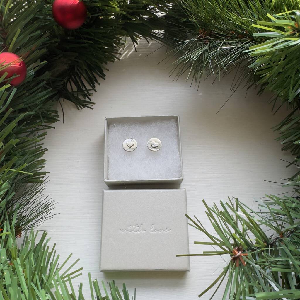 Sterling Silver Heart Stud Earrings With Heart Charm