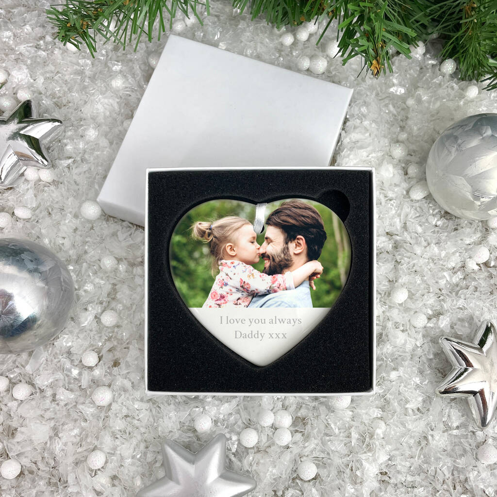 Any Message And Photo Ceramic Heart Hanging Decoration Bauble + Gift Box