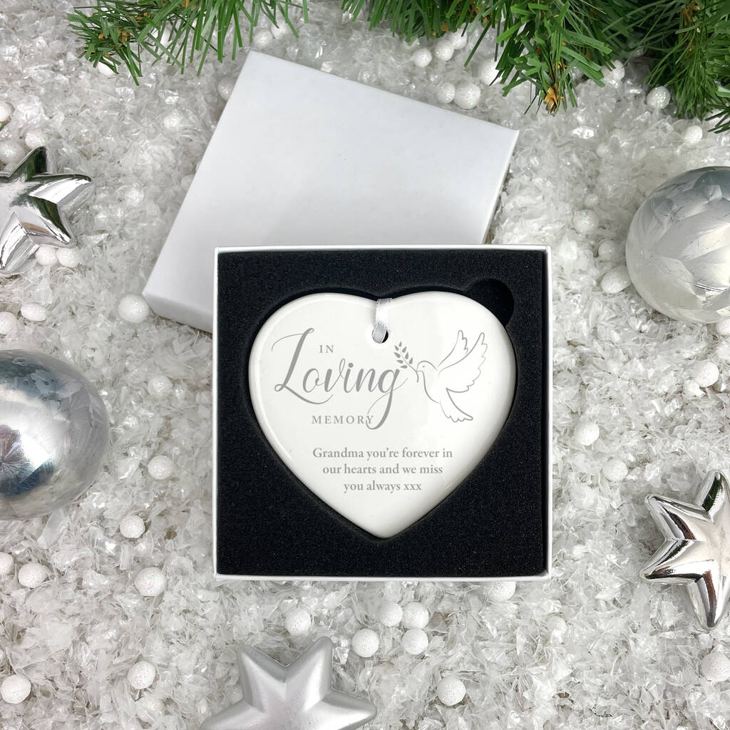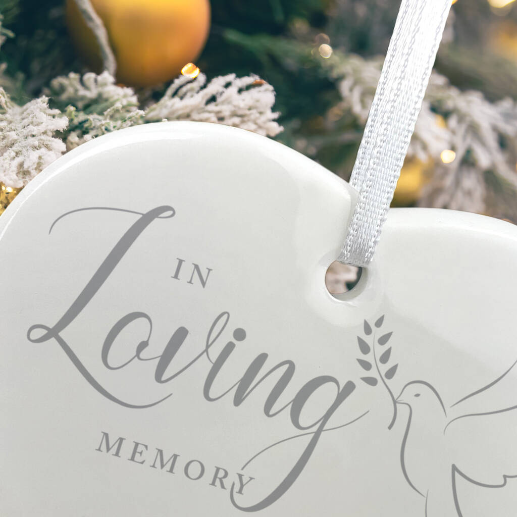 In Loving Memory Dove Ceramic Heart Hanging Decoration Bauble + Gift Box