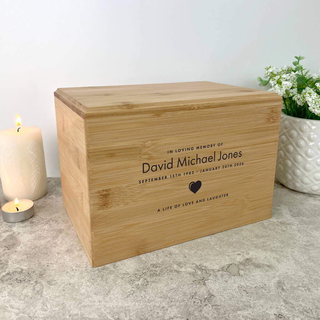 Personalised Bamboo Urn For Cremation Ashes Name And Icon Design