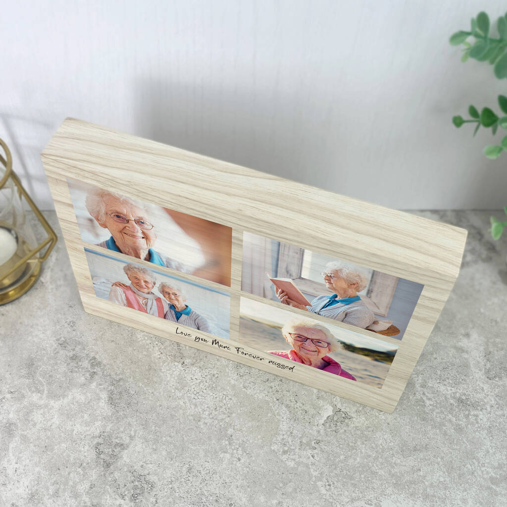 Personalised Freestanding Four Photo Giant Wooden Block 15cm X 21cm Landscape