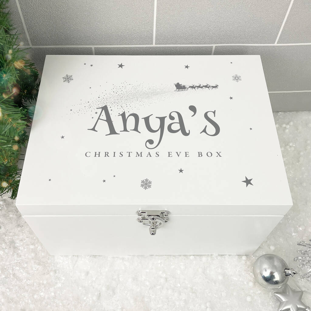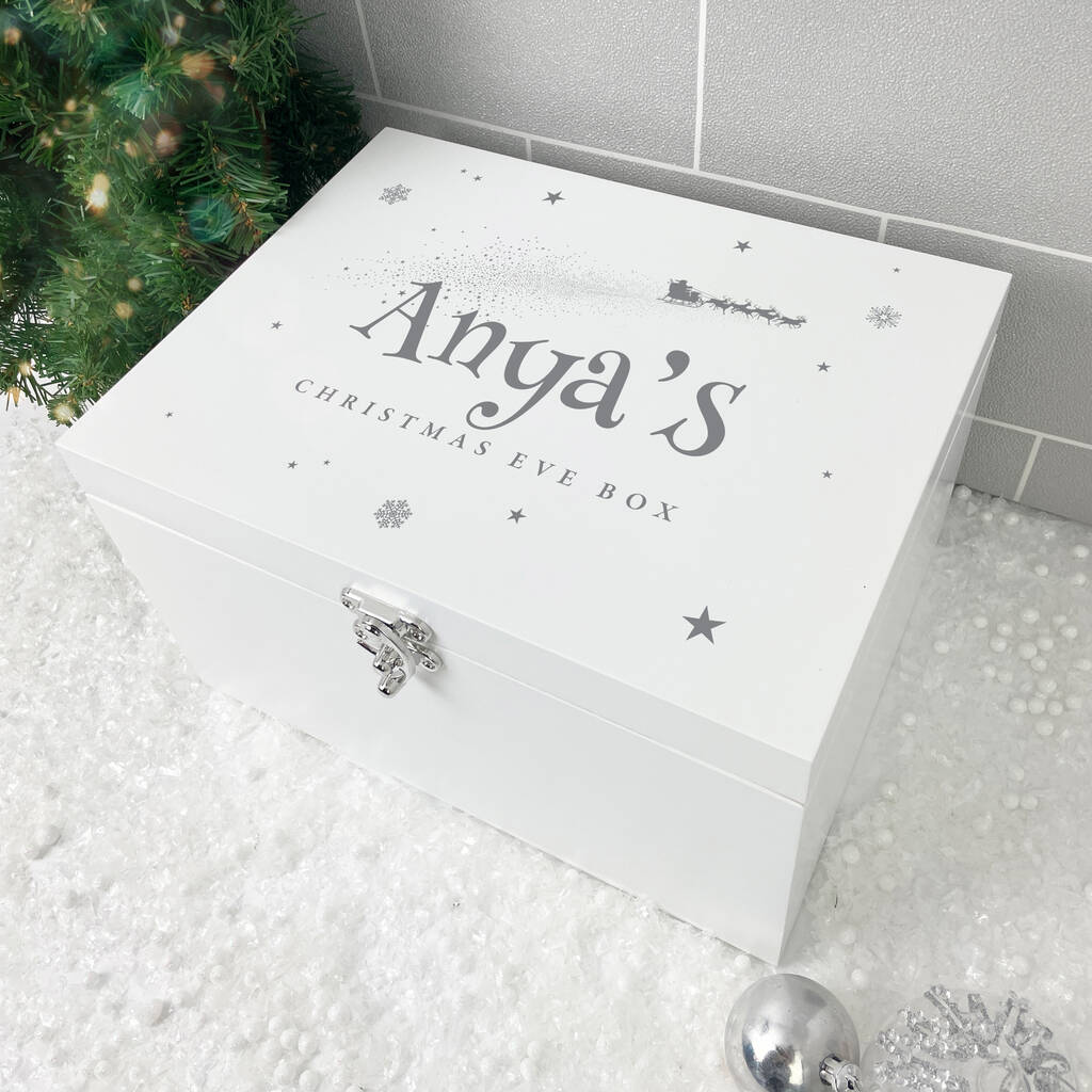 Personalised White Wooden Santa Sleigh Christmas Eve Box Three Sizes 22cm | 27cm | 30cm