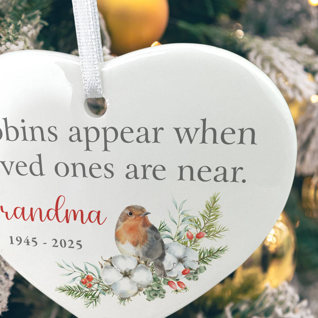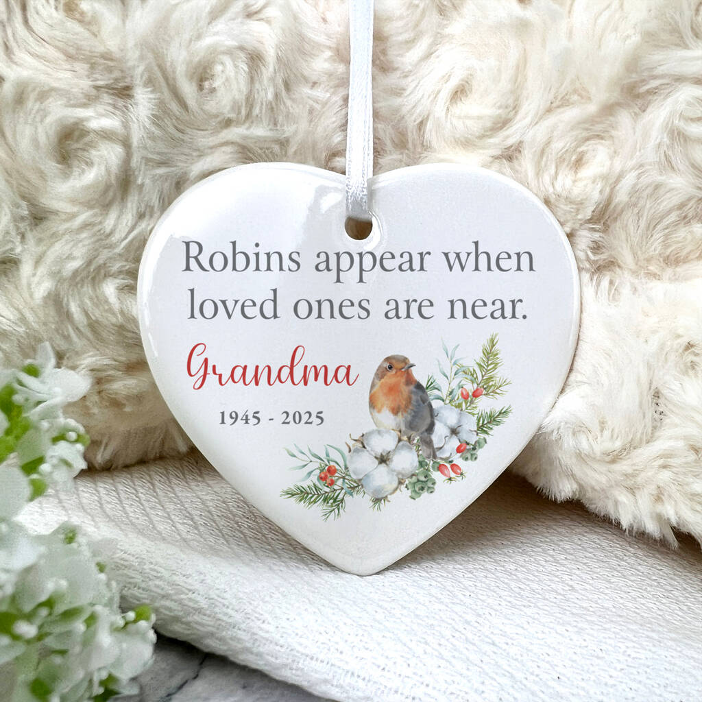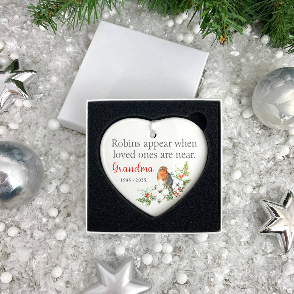 Robins Appear Ceramic Heart Hanging Decoration Bauble + Gift Box