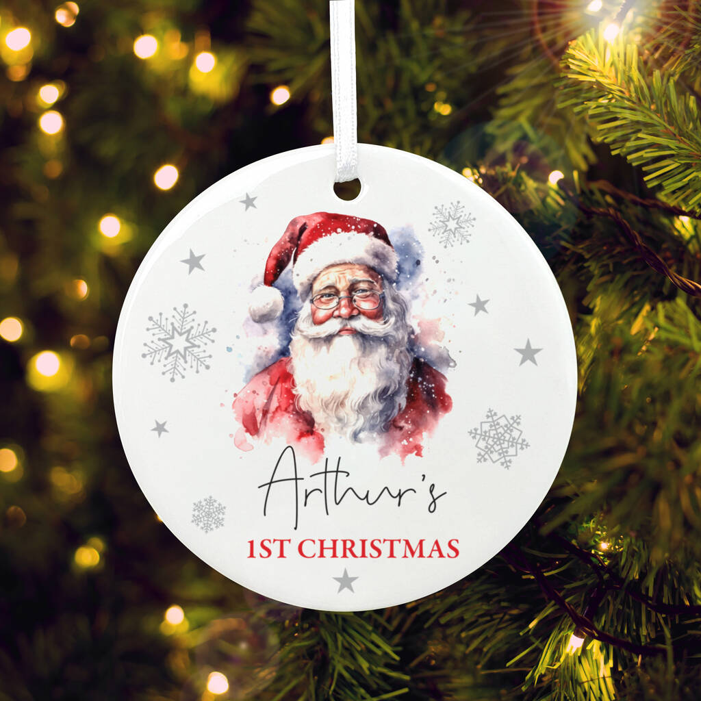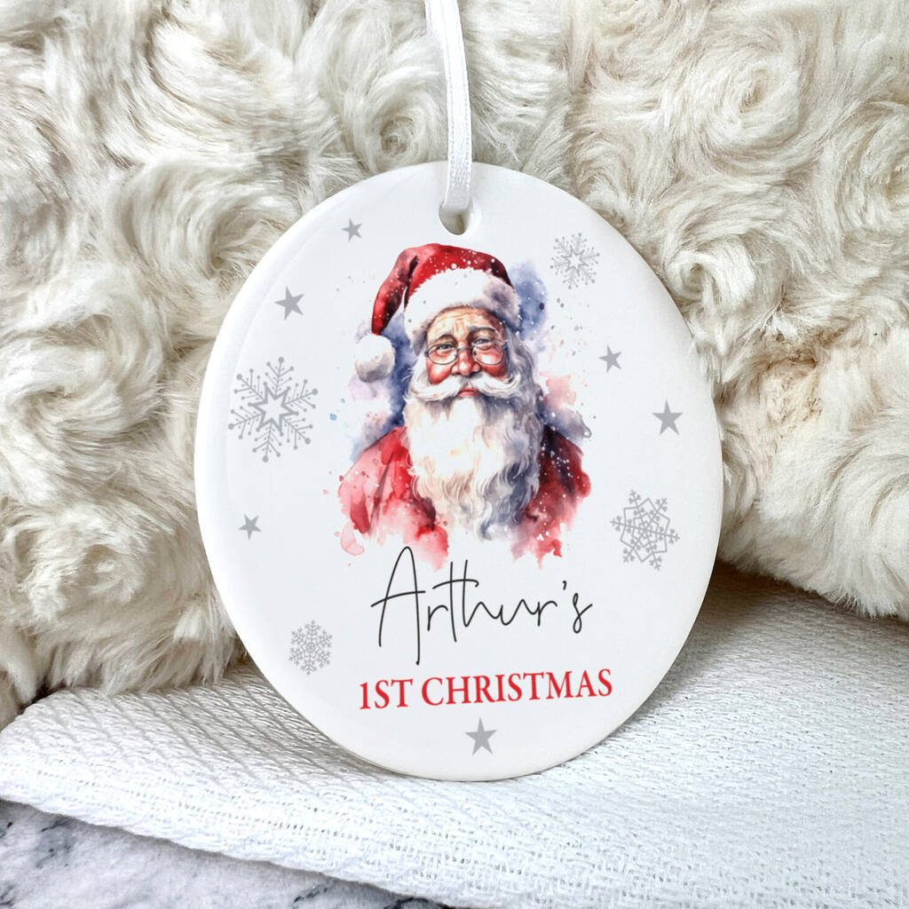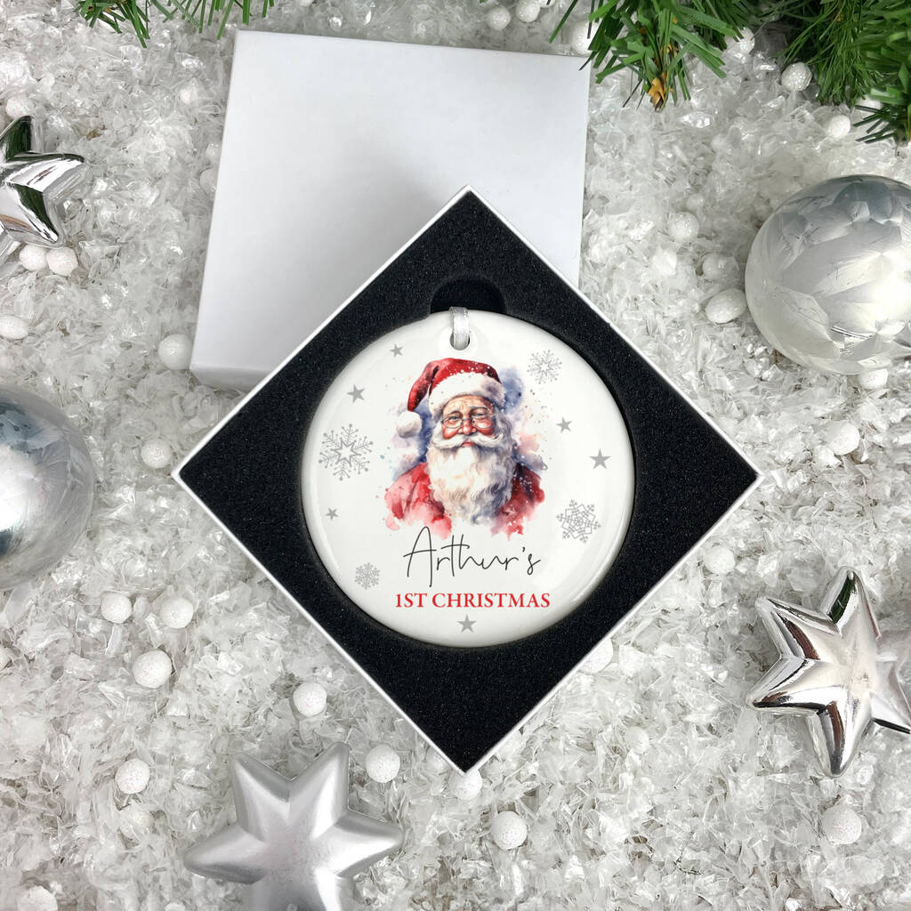 Traditional Santa Any Message Ceramic Disc Hanging Decoration Bauble + Gift Box